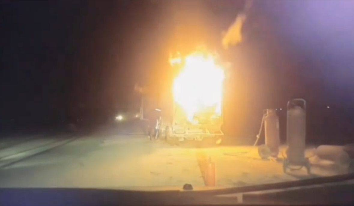 Полицейские отбуксировали горящую машину в Карагандинской области