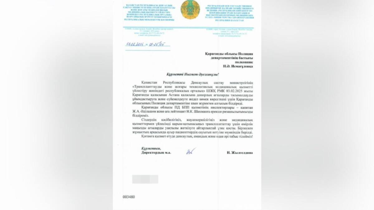 В адрес руководства департамента полиции Карагандинской области поступило письмо от руководства Республиканского центра по координации трансплантации и высокотехнологичных медицинских услуг....