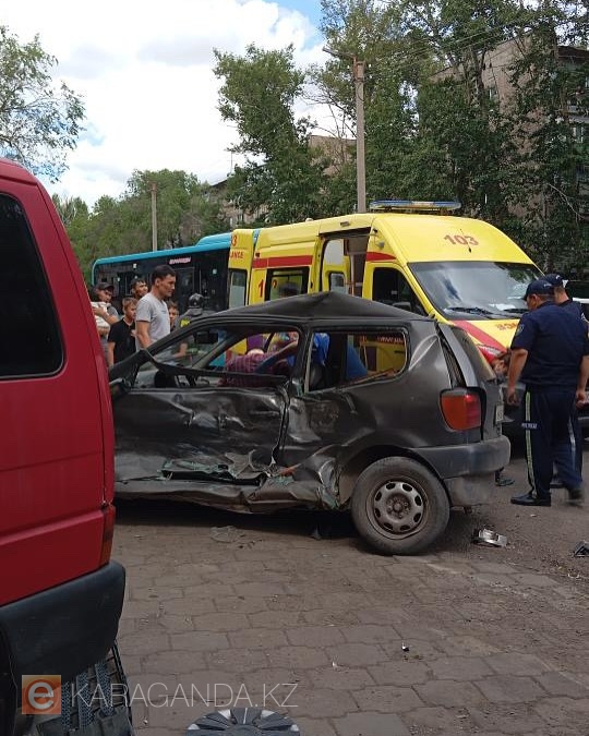 Два автомобиля столкнулись в Караганде: пассажиры пострадали
