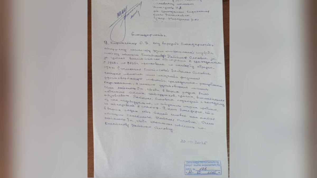 В адрес начальника департамента полиции Карагандинской области поступило трогательное письмо от 63-летней жительницы одного из сельских населенных пунктов. Женщина поблагодарила сотрудников ...