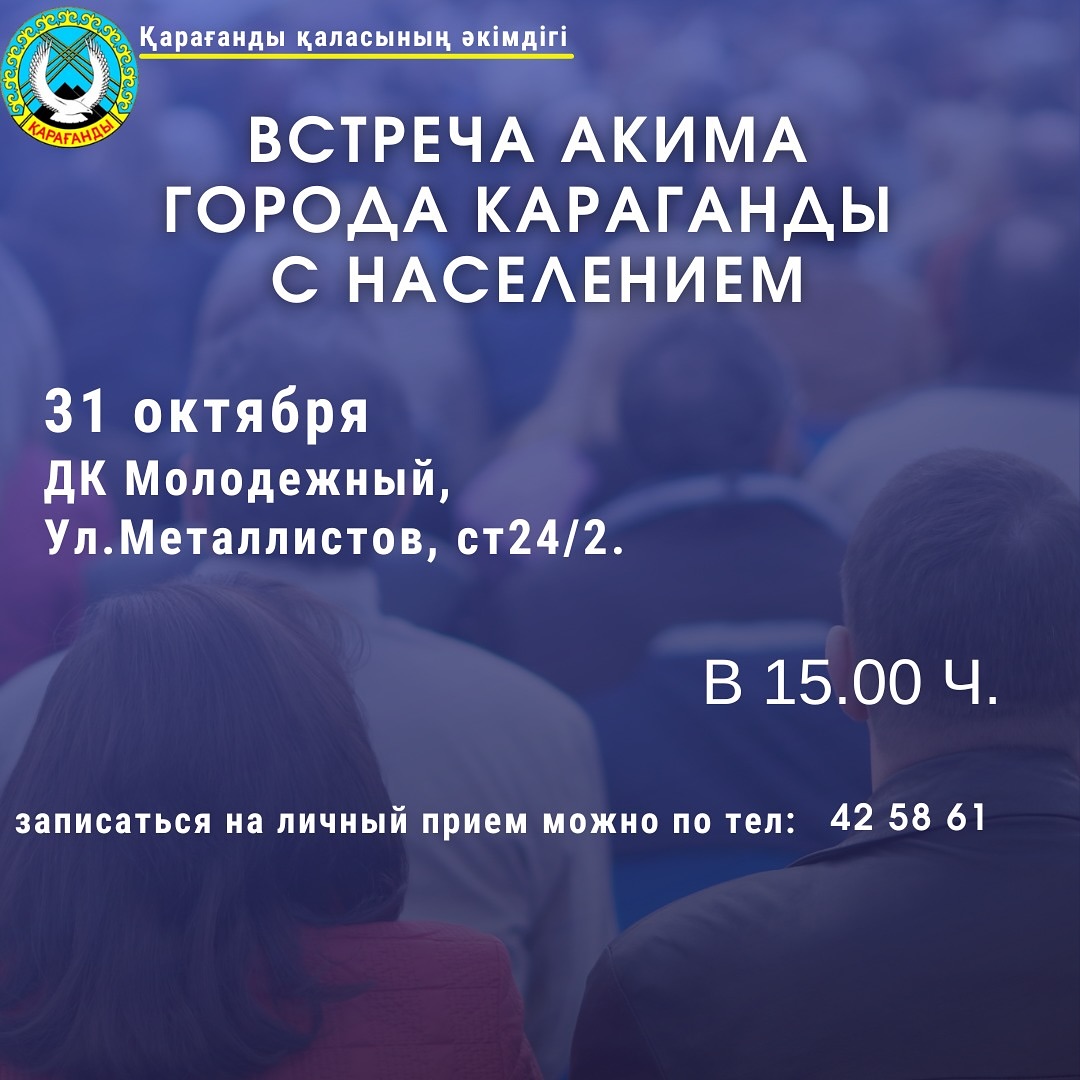 Встреча с населением состоится 23 октября 2025 года в 15:00 во Дворце культуры Темиртау.Для сбора вопросов и предложений от населения создана рабочая группа. Оставить свои обращения можно по...