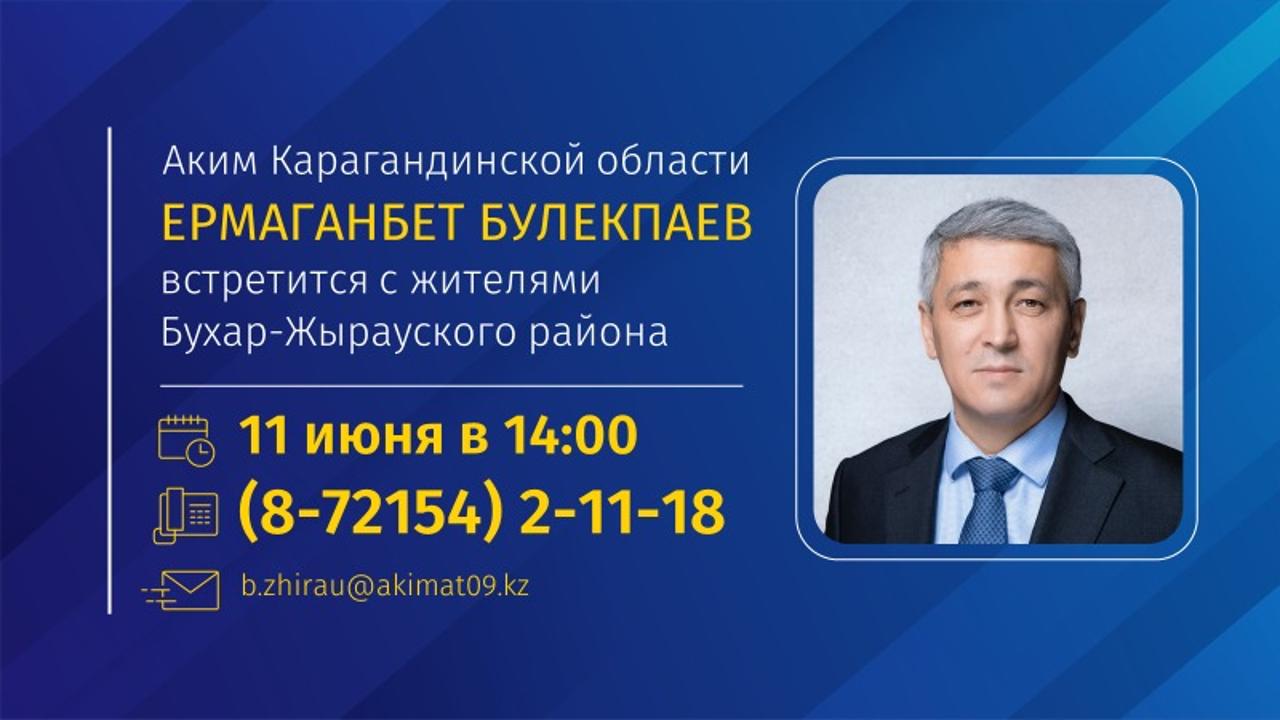 Аким Карагандинской области Ермаганбет Булекпаев встретится с жителями Караганды