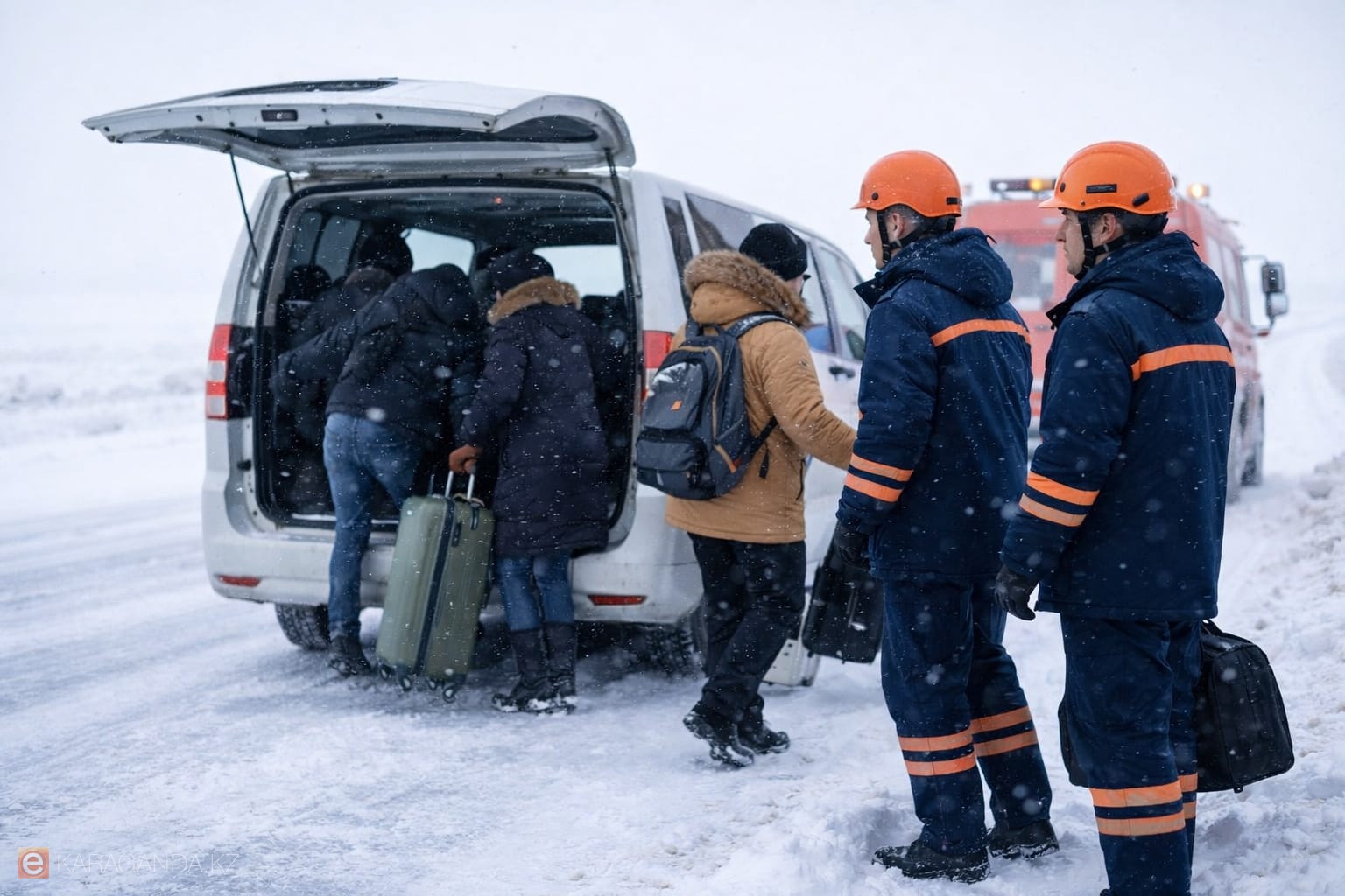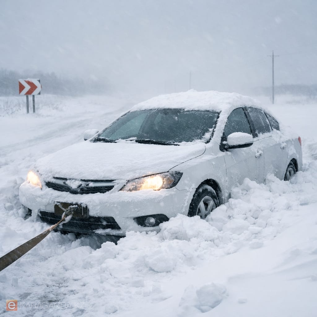 Спасатели эвакуировали автомобиль из снежного заноса в Карагандинской области