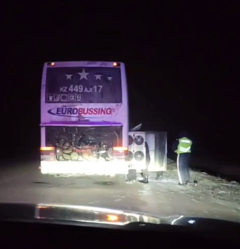Патрульные спасли пассажиров замёрзшего автобуса на трассе Караганда — Шидерты