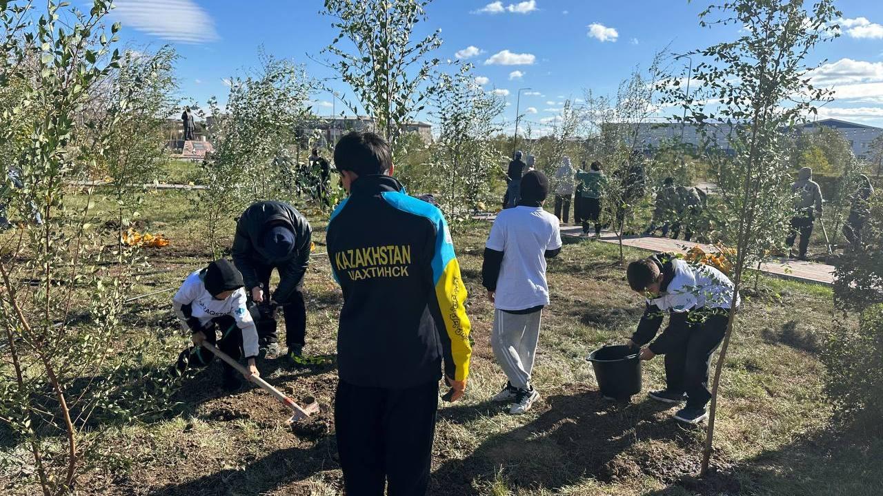 «Таза Қазақстан»: В Шахтинске школьники и волонтёры озеленили центральный парк