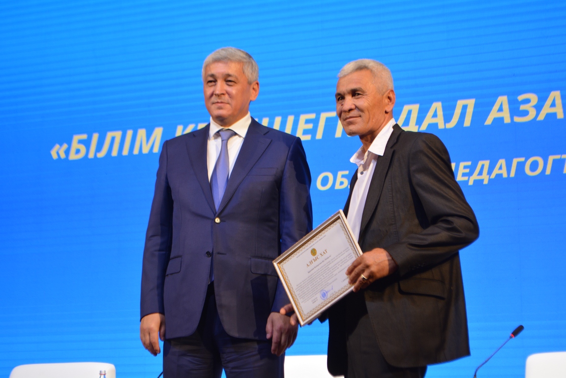 Өңір басшысы Ермағанбет Бөлекпаевтың қолынан педагогтар өздерінің марапаттарын – алғыс хаттар мен төсбелгілерді алды.