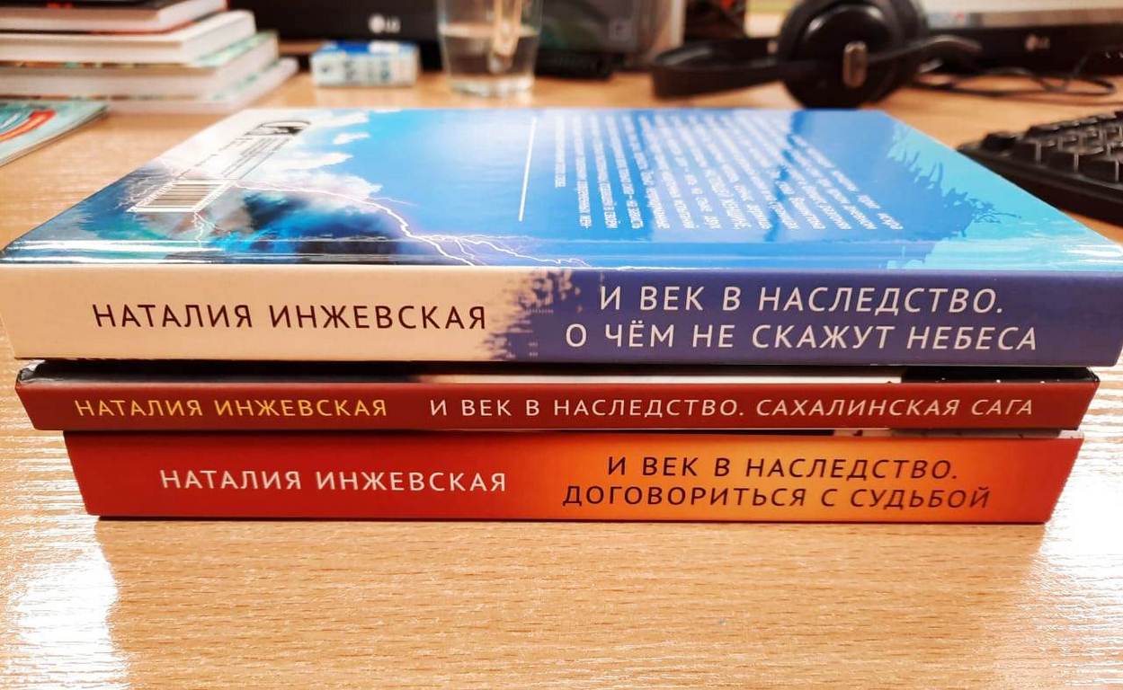 "Сахалин дастаны" кітабында үш негізгі жол бар. Орал маңындағы Ақсайға қоныс аударған Ұлы Отан соғысы кезінде жасөспірім болған Саратов облысынан келген Ваня Нина. Екеуі Сахалинде кездейсоқ кездеседі. Бірақ ертерек Нина ұшқыш Виталиймен кездеседі, ол да Сахалинге ұшып кетеді, ол жерде оған үйленгісі келеді. Виталий жоғалады - Нина Ванямен кездескенде қайтыс болды деп ойлайды. Сахалинде Ванямен Нинаның ғана емес, басқа кейіпкерлердің де тағдыры байланысты болады. Сюжеттің белгілі бір кезеңінде кейіпкерлер Қарағандыға келеді, онда олардың тарихы жалғасады", — дейді Наталья Инжевская.
