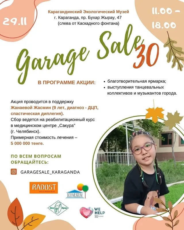 Халық арасында "гараж" деп аталатын Garage Sale 29 қарашада мерейтойлық рет өтеді – ол отызыншы болады, сағат 11.00-де басталып, 18.00-ге дейін созылады.
