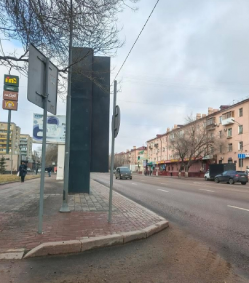 Қарағанды қаласының орталығында жарнама жүргізушілерге шолу жасады. Дизайн бұзушылықтармен орнатылды