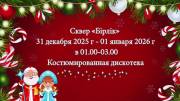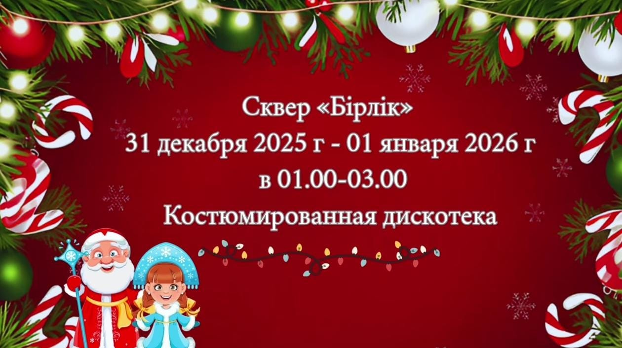 Жаңа жыл қарсаңында 1 қаңтарда сағат 01: 00-ден 03:00-ге дейін "Бірлік" скверінде мерекені куранттар жекпе-жегінен кейін жалғастырғысы келетіндер үшін костюмді дискотека өтеді.