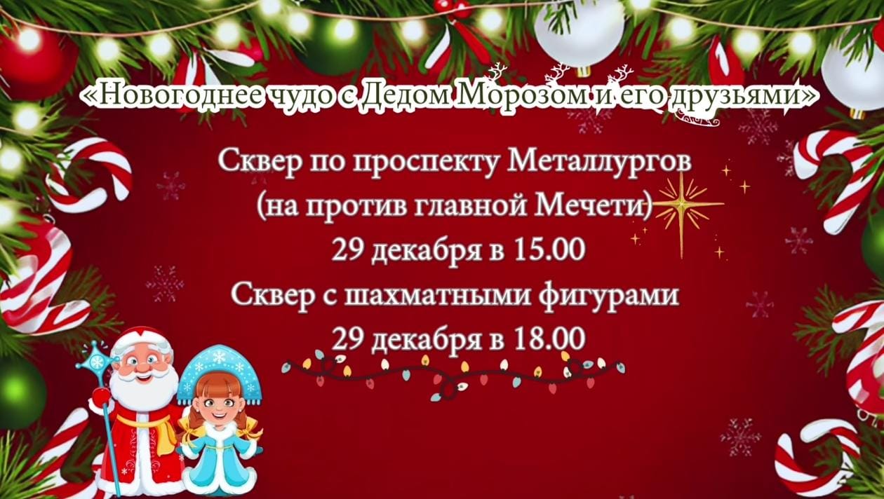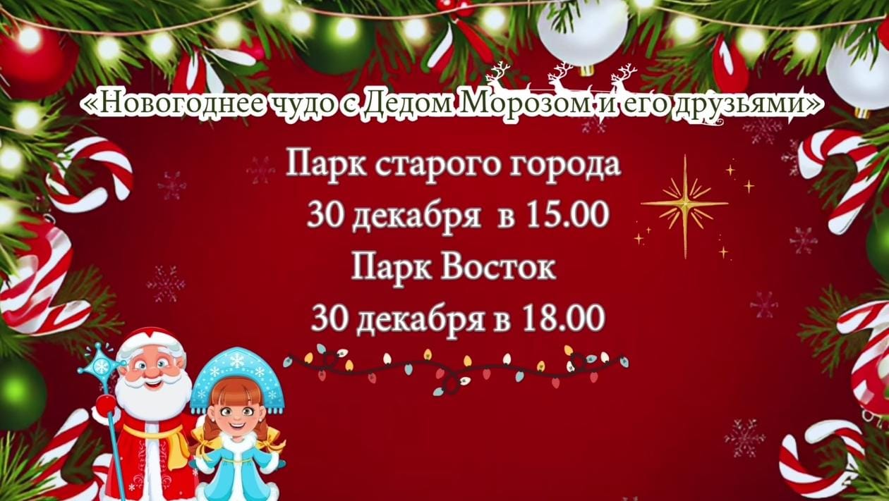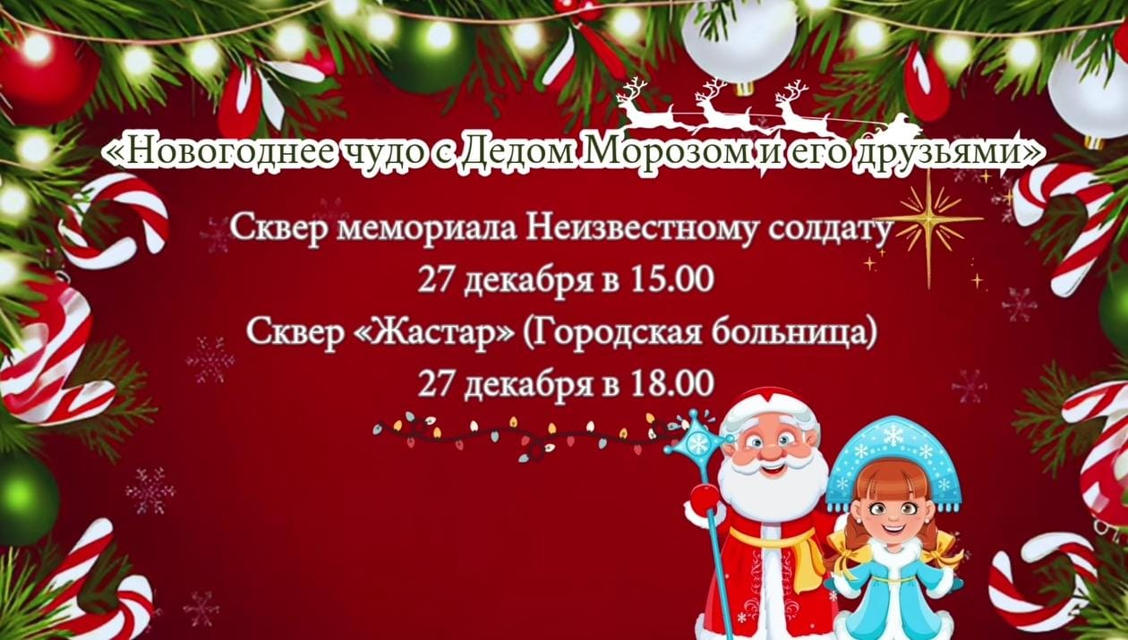 30 желтоқсанда сағат 15.00 – де Аяз Ата мен оның достары балаларды ескі қала саябағында, Ал сағат 18.00-де "Восток"мәдениет және демалыс саябағында күтеді.