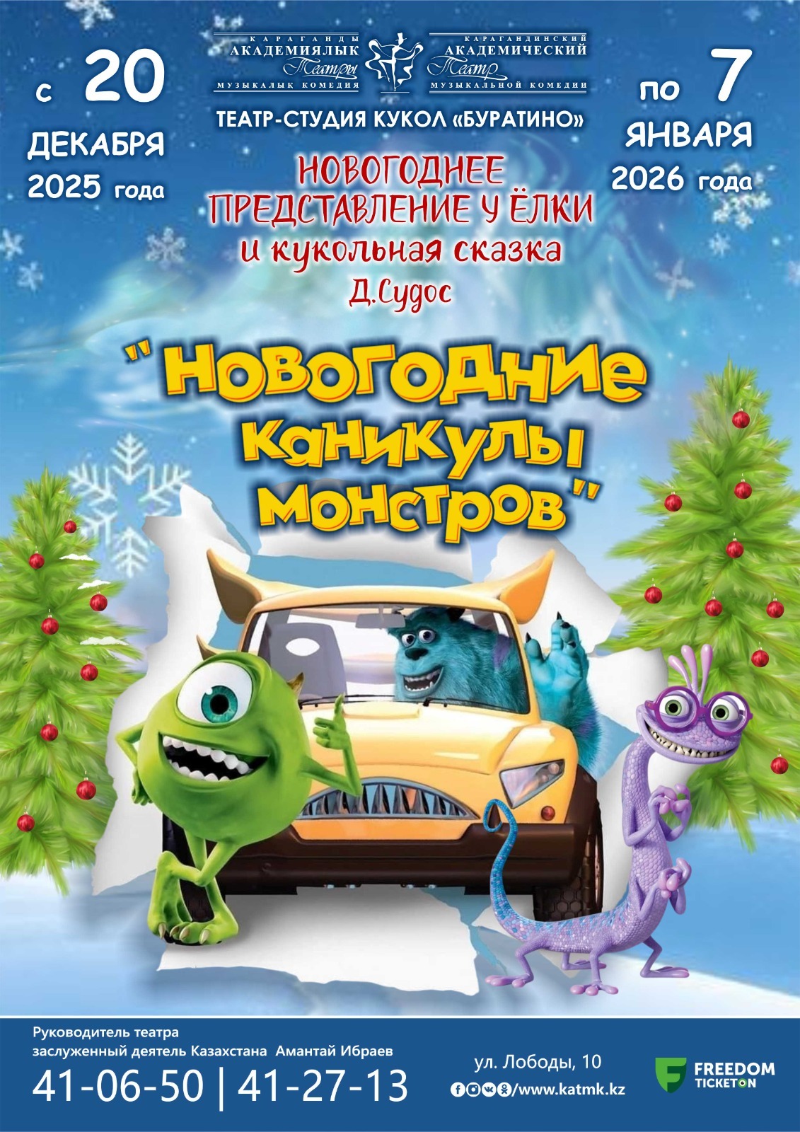 Жаңа жылдық мерекелерде пьесалар "Буратино" қуыршақ студиясының театрында да дайындалады: мұнда 20 желтоқсаннан 7 қаңтарға дейін көрермендерді қызықты "құбыжықтардың Жаңа жылдық демалысы"қуыршақ ертегісі күтеді. Студия театрының әртісі, қоюшы режиссер Дарья Судос қойған жаңа пьеса "Құбыжықтар корпорациясы" мультфильмінің негізінде жасалған. Сонымен, спектакльде барлығының сүйікті кейіпкерлері бар: Майк Вазовский, Джеймс Салливан және Рэндалл Боггс.