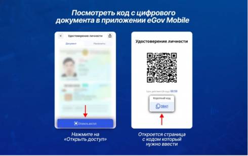 - EGov Mobile қосымшасында сандық құжаттан кодты енгізу арқылы.