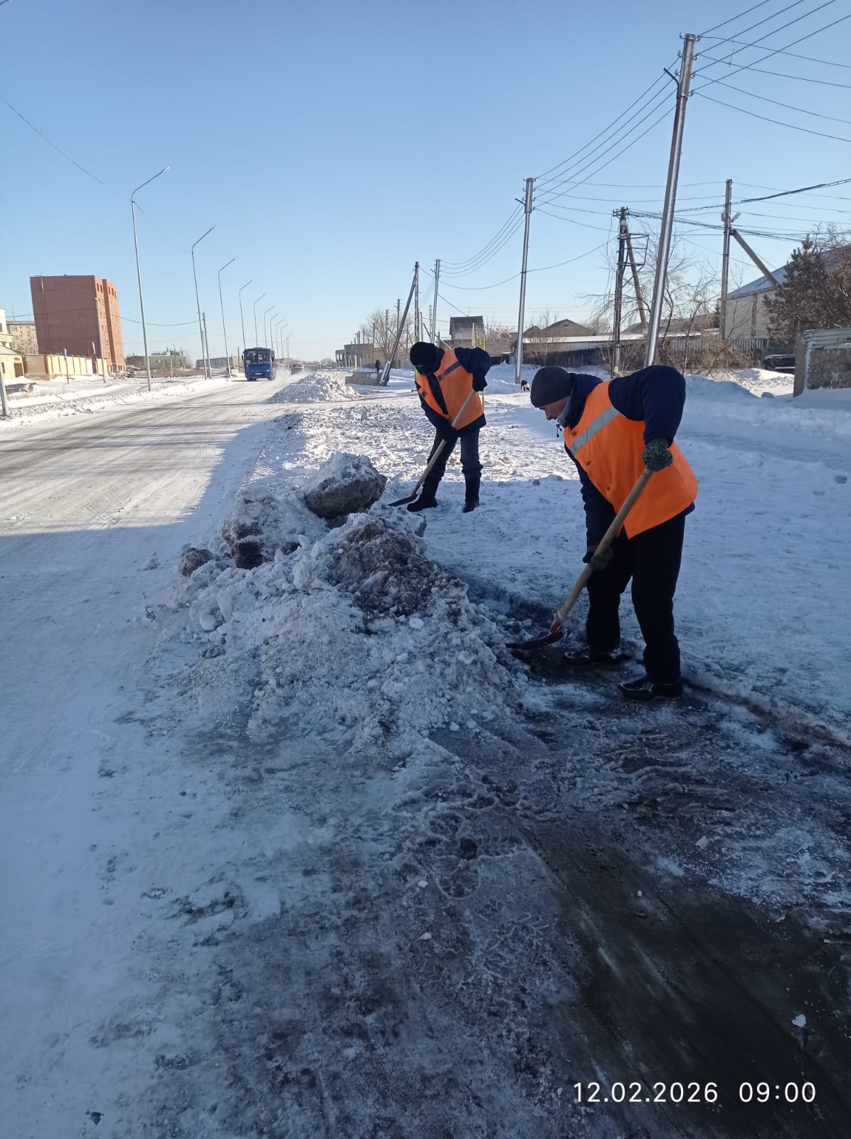 Таңертең жұмыс жалғасын тапты: арнайы техника жол төсемін щеткамен тазалайды, жүріс бөлігін, жаяу жүргіншілер өткелдерін, тротуарлар мен аялдама павильондарын себеді. Тек кешеден бастап жолдарға 100 тоннаға жуық құм-тұз қоспасы құйылды.