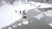 Ер адам екі рет сәттілікке ие болды, өйткені оның қасында нағыз қаһарман болудан басқа, кеше құтқарушылар мұз астына кеткен көлікті алып шықты. Рас, мұндай "жүзуден" кейін көлік құралын жөндеу өте қиын болады деп болжауға болады.
