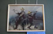 "Мен жылқыину пісірдім, сүйектерді тастауға батылым жетпеді: мен олардың пішінін әдемі деп таптым. Тазартылды, кептірілді. Мен оларды неге боямасқа деп ойладым-бұл Мен үшін жаңа материал болды. Ою үшін сүйек-кенеп Ауыр, бірақ майлы бояу үшін өте ыңғайлы, бірақ сүйек құрылымына байланысты ұсақ бөлшектерді салу қиын. Міне, мен тағы да көшпелі тақырыпты суреттедім. Мен қызықты тәжірибе алдым, сонымен қатар біздің көрмеде жұмыс ұсынуды шештім", – дейді Валерия Батталова.