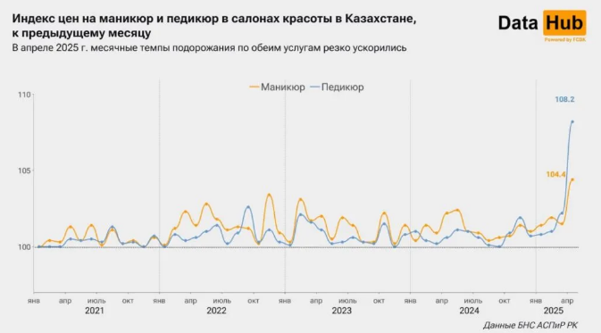 Цены взлетели — особенно в Алматы Эксперты DATA HUB пишут, что по данным Бюро нацстатистики, в апреле услуги маникюра по стране подорожали на 4,4% по сравнению с мартом. Это ...