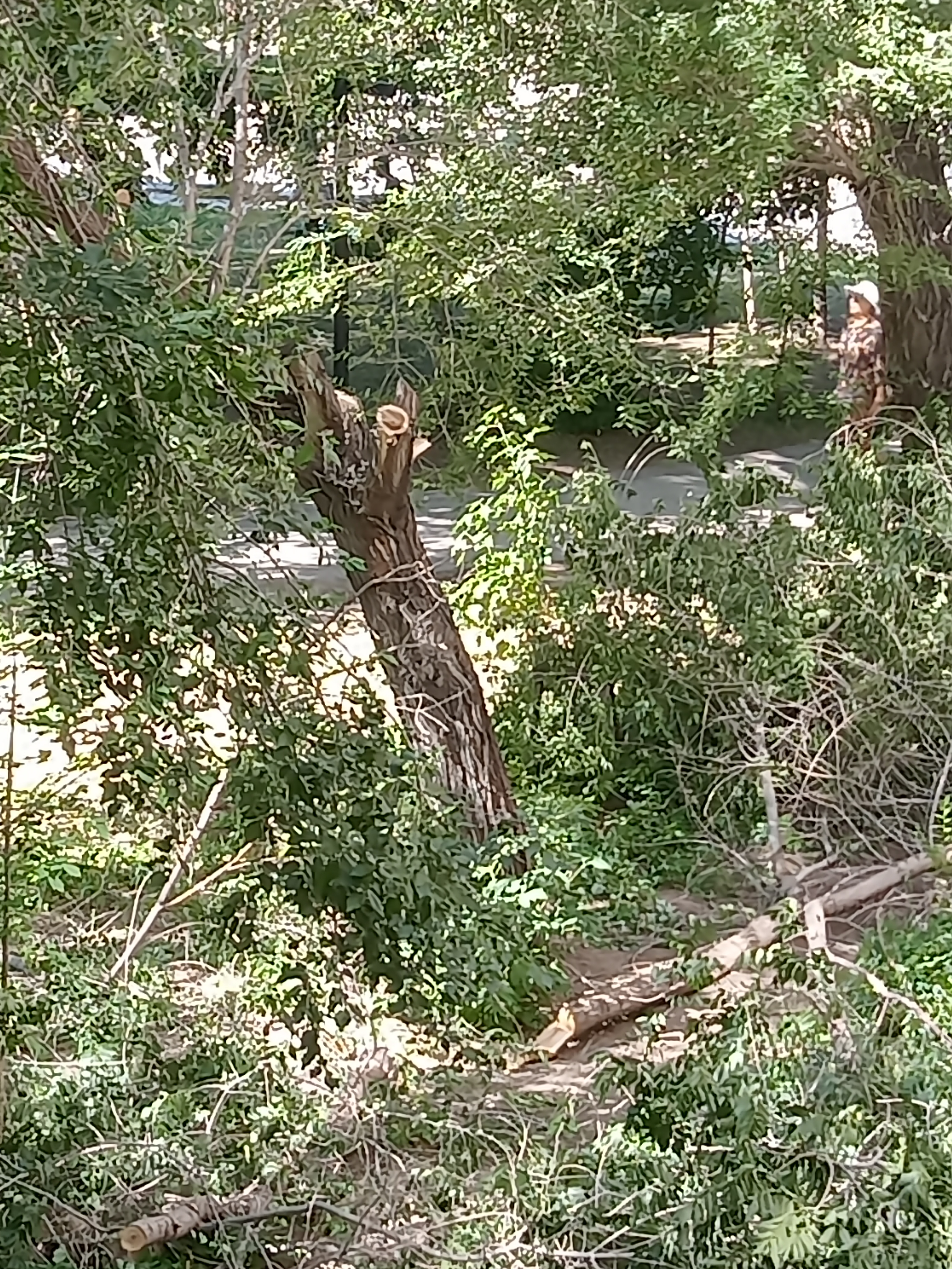 Здравствуйте.До каких пор будет продолаться незаконная вырубка деревьев,причем на территории кондоминиума и без согласования с жильцами дома? Приехали рабочие,причем когда многие на работе,в 10часов.и стали пилить зелёный карагач,рост которого исчисляется десятилетиями! По просьбе жительницы первого этажа 4 подъезда квартиры 35 на Аманжолова12/1,которая сначала сказала,что это якобы сухое дерево.Когда сфотографировали спиленные стволы зелёные и здоровые,выяснилась другая причина -смешная - на неостекленный балкон проникают жучки!!!Рабочие,как всегда в отказ от какой организации,по чьему велению и со ссылкой на акимат.Разрешительные документы на маил,обезку-отсутствовали,решения жителей не было,ЧС ситуации не было.Дерево зелёное и здоровое!Налицо нарушения действующего законодательства.В итоге ,когда сфотографировали их действия ,все пытались скрыться,в том числе и пожилая женщина ,по чьему единоличному заказу это творилось!!!Прошу максимально дать огласку и запрет на данные действия с зелёными насаждениями возле домов и внутри коробок!!!